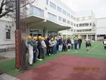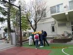 18日(水)の登校時、6年の代表委員の呼びかけで「駕籠町小を活気づける」趣旨で、登校してくる子たちに登校時間に係っている「挨拶は魔法の力」を歌うという取り組みをしました。有志の6年が並んで歌っています。