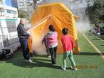 全体の避難訓練の後、3年は煙ハウス、4年は起震車での体験活動をしました。動画でないので起震車の震度7が伝わらないのが残念です。昨今、地震、火事が多発しており、災害は他人ごとではないと感じます。この体験を自分事として、適切な避難行動につなげてほしいものです。