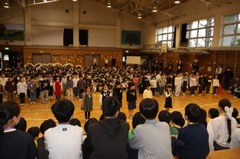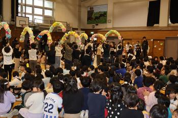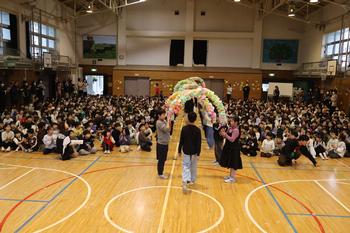 2/25(水)は、6年生を送る会を行いました。全校の子供たちが体育館に集まり、6年生に「卒業おめでとう」と「これまでありがとう」を伝えることができました。体育館が祝福と感謝でいっぱいになった素晴しい時間でした。1~5年生までの子供たちは、それぞれの学年で考えた特色ある出し物やプレゼントで6年生に思いを伝えました。6年生からはお礼として合奏『エル・クンバンチェロ』の演奏がありました。圧巻の演奏でした。会の中では、「校章旗」「挨拶」「しいの木班」の3つのカギが6年生から5年生に引き継がれ、いよいよ学校のリーダーの役割を5年生が担うことになりました。6年生、これまでありがとう。5年生、これから小日台をよろしくお願いします。