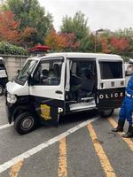 白バイやパトカーなどに乗り、大はしゃぎでした。