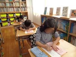 1・2年生は教室で硬筆に取り組み、3~6年生は体育館で毛筆に取り組みました。