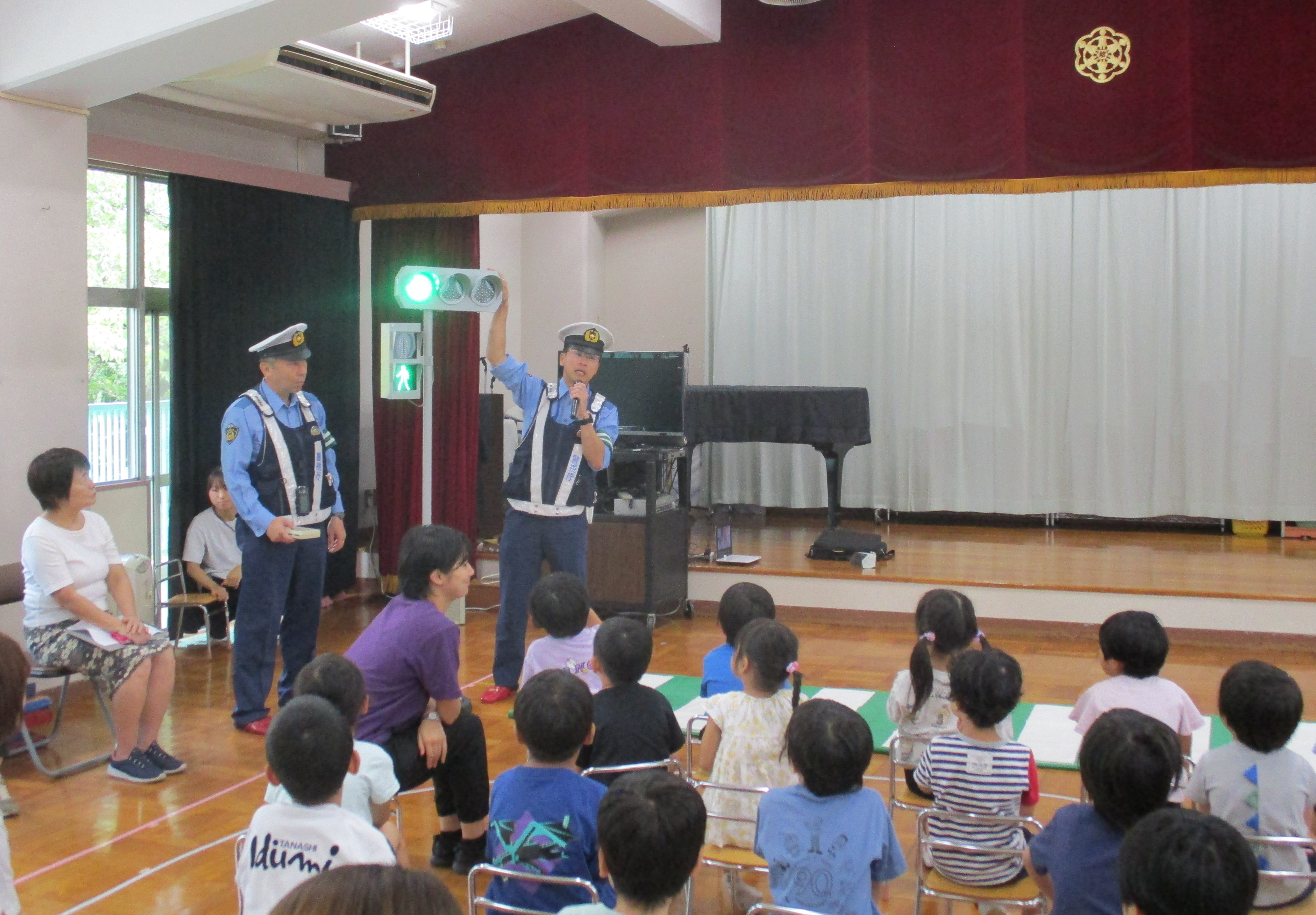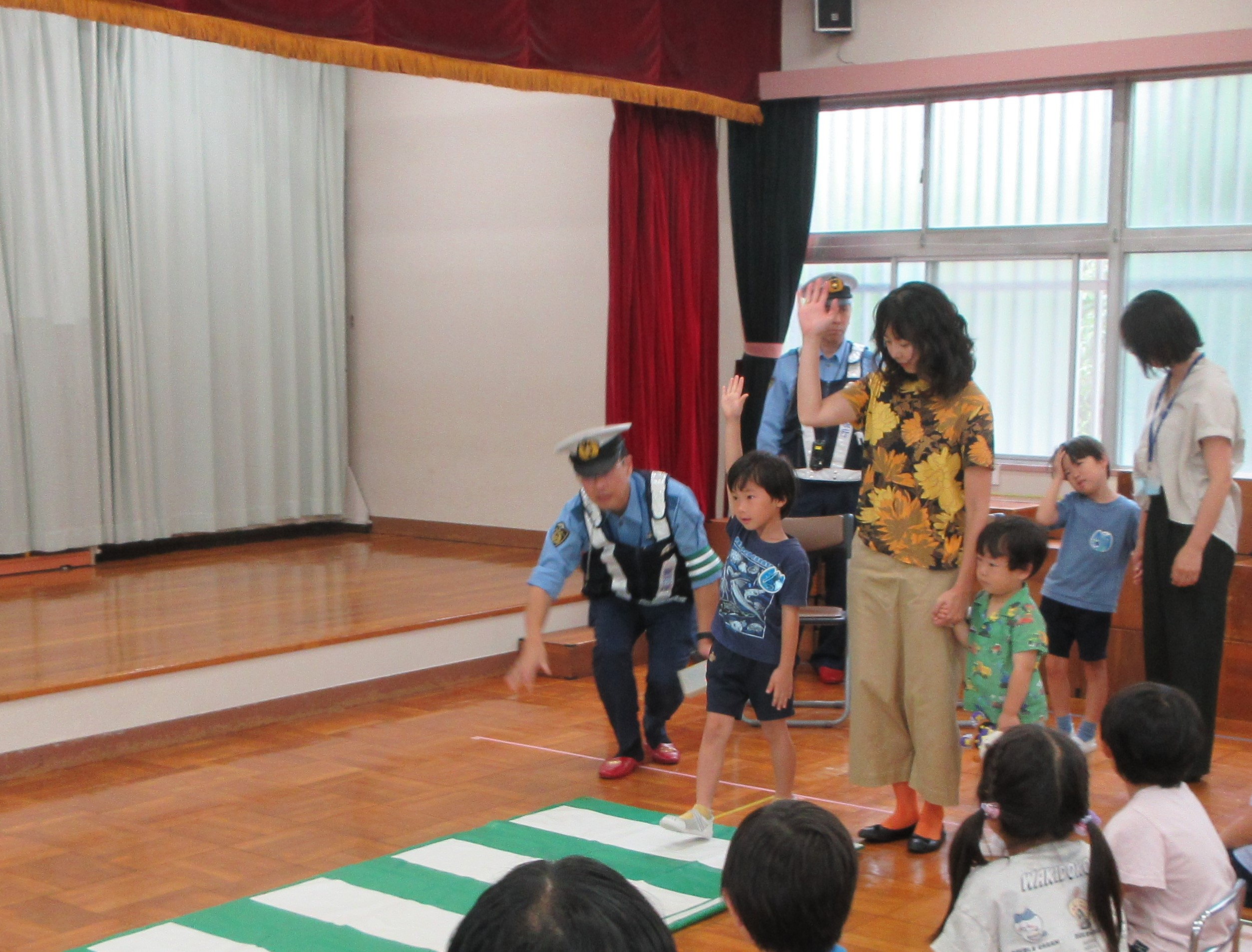 16日(火)富坂警察署の警察官の方に来ていただき、親子交通安全教室を行いました。