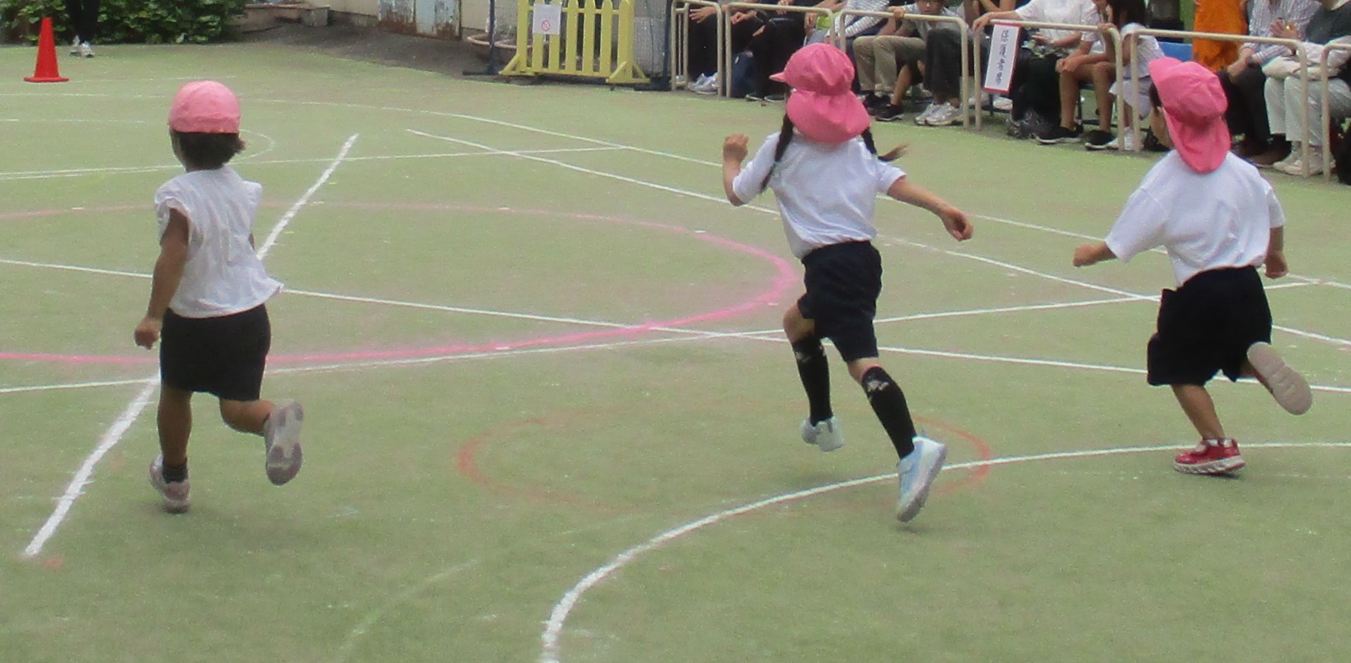 4歳児もも組は、初めての運動会でした。保護者の方に見守られる中で、かけっこやリズムを楽しみました。
