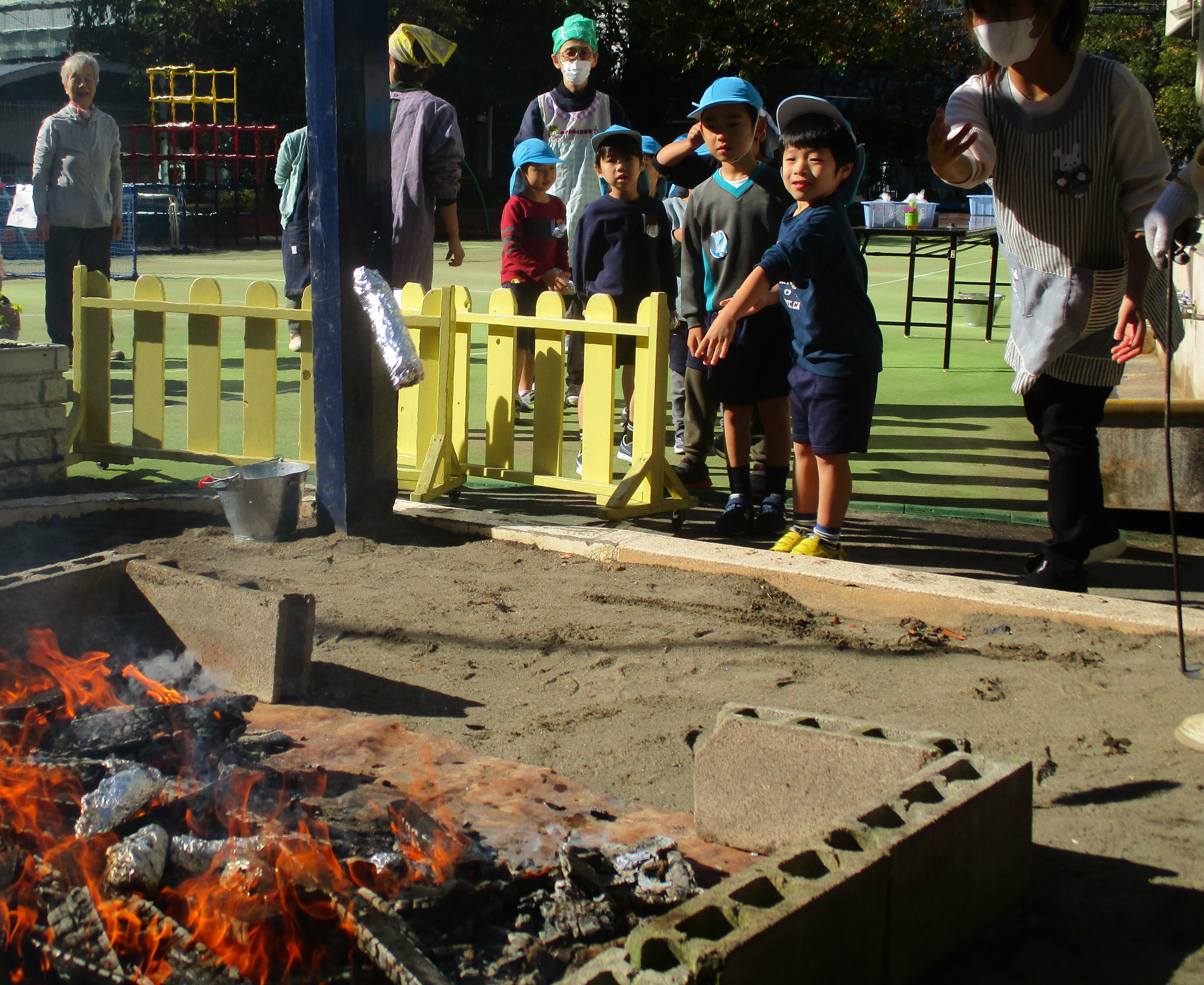 青空のもとで食べるホカホカの焼き芋はとてもおいしかったようで、 何度も“おかわり”をする子もいました。