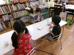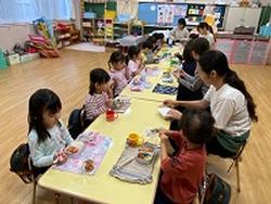 せんべいやクッキーなどのおやつを食べます。月に数回程度は地域のパン屋さんのかわいい動物パンが食べられます。 |