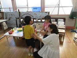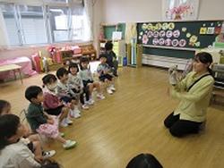 1日の締めくくりは、先生が読んでくれる紙芝居や絵本をみんなで見たり、歌を歌ったりします。今日あったことを振り返ったり、友達と共有したりして、明日への活動に期待をもてるようにします。 |