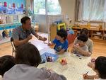 5月20日に年長ほし組が「チャレンジ日舞」の時間に日本舞踊を体験しました。花柳富士紗先生にお越しいただき、本物の扇子を使って踊りを教えていただきました。子どもたちは花柳先生をよく見ながら、すり足で進んだり、くるりと回ったりと一生懸命体を動かしていました。「日本には昔からこんな踊りがあるんだね」と、気付くことのできる貴重な体験をすることができました。