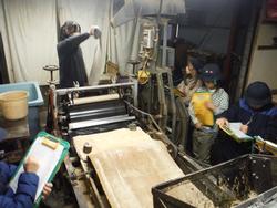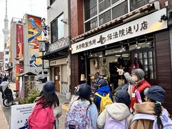 1月20日(水)、4年生は社会科見学に行きました。午前中は浅草を訪れ、ボランティアガイドさんと一緒に浅草寺周辺や仲見世を周り、浅草の歴史やまちづくりの取組について詳しく学びました。浅草の賑わいに目を輝かせて見学していた子供たちでしたが、大地震や戦争など様々な困難を乗り越えた歴史を教えていただく時には、真剣なまなざしで話に耳を傾けていました。午後は新宿区落合にある「染ものがたり博物館」を訪れました。ここでは、社会科の授業で習った東京染小紋が、実際にはどのように作られているのかを、工房の見学と染め物体験を通して学びました。工房にある型紙は江戸時代から、機械は古いもので大正時代から大切に受け継がれて使われていることを知り、伝統工芸品は技術だけではなく、携わる人々の努力と情熱によって支えられていることを実感することができました。染め物体験では、トートバッグに自分が選んだ季節の花の柄を染めました。職人さんの指導を受けて丁寧に刷毛を動かし、柄を布地に染めました。型紙を外した後に表れた柄の美しさに、思わず歓声が上がる出来栄えでした。一日を通して、まちづくりや伝統工芸の奥深さやその魅力を学ぶことができました。