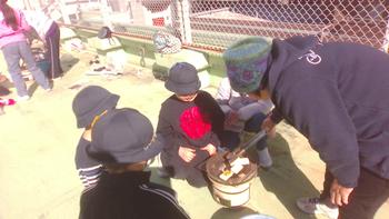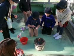 2月3日(火)、3年生は、地域の方々にお越しいただき七輪を使った火起こし体験をしました。どのようにすると炭に火をつけられるのかを考えながら、初めてマッチを使ったり、空気口からうちわで空気を送ったりしました。なかなか火がつかず、難しさを感じた子供たち、感想文からは、「昔の人は大変な思いをして調理をしていたのだな。」「家で焼いたおもちよりも七輪で焼いた方がおいしく感じました。」と体験を通していろいろなことを考えることができていました。