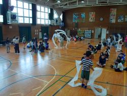 各学年に発表しました。2~5年生が6年生の演技に身を乗り出して見ている様子が印象的でした。
