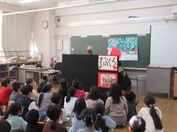 朝の時間を使い、展覧会パフォーマンスタイムで6年生が行った人形劇を、