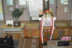 昨日の空模様とは打って変わって、今朝は真っ青な晴天です。校長室に入ってみると、昨日「礫川おやじの会」のみなさんが作ってくださった鏡餅が置いてありました。早速用務主事さんに飾りつけをしてもらい、玄関にかざりました。これでお正月を迎える準備がひとつできました。おやじの会のみな様、ありがとうございます。礫川小学校はあと9日で冬季休業を迎えます。お正月の前にはこんなお楽しみもありますね。放送室前の廊下に素敵なコーナーがあります。その先にある給食の掲示板もわくわくします。これは季節や行事に合わせて図書館専門員や栄養士が作成しています。「冬休みチャレンジレシピ」は冬休みに大活躍しそうです。