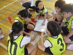 礫川小学校では今年度の校内研究主題を「創造力豊かな児童の育成」とし、ウェルビーイングの向上を指導の手立ての一つに掲げ、年間を通して取り組んでいるところです。本日は中学年分科会の提案授業でした。4年生「体育科」キックベースボールの単元で、子供たちの「経験をもとに組み合わせたり、結び付けたりし新しいものを生み出そうとする」「試行錯誤・創意工夫して粘り強く取り組む」「目的意識や相手意識をもって協働する」姿を検証しました。猛暑の中だったので、校庭でのゲームは交代で5分づつほど行いました。その後、体育館での作戦タイム・振り返りではチームごとに活発な意見が出され、キックベースボールを楽しみながらディフェンスの工夫をしていました。