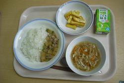 今日の給食は「ぶんきょう和食デー」アレルギー対応がない献立なので、机を合わせていつもよりちょっぴりおしゃべりしながらいただきます。栄養士の視点では、いつもの牛乳がお茶なのでカルシュウム不足が心配だそうですが、「あまから鶏だいこん」はご飯にぴったり。子供たちからは「おいしかった。また食べたい!」という声が聞こえました。