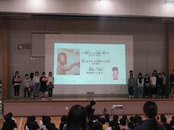 今朝は、児童集会「ユニセフ募金について」を行いました。代表委員会の子供たちが、ユニセフの活動内容や、どうして募金を行うかについて説明しました。どの学年の子供たちも説明を真剣に聞き、舞台に映し出された映像に見入っていました。募金は来週27日から31日まで行います。子供たちの成長に合わせて、「社会貢献」や「自分にできること」を考え、話し合う機会としたいです。