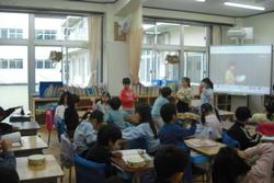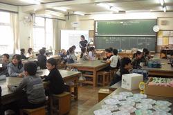 今日は朝から雨ですが、教室でも体育の学習はできます。1年生は長縄とびを練習していました。1年生にとって長縄を飛ぶのは勇気がいる子供もいます。たくさん練習して、次の体育朝会ではクラスの記録を伸ばしましょう。隣の学級では、音楽「どんな音がすきかな?」で、タンバリンやすずなどの打楽器の鳴らし方を工夫していました。お気に入りの音は見つかったでしょうか。図工室では展覧会に向けて、4年生が共同制作の作品づくりを始めました。さぁ、どんな作品になるのでしょう。楽しみです。