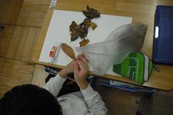 先週の火曜日21日に、1年生が生活科「秋となかよし」の校外学習で、小石川植物園へ「秋をさがしに」でかけてきました。落ち葉やドングリを見つけ、思い思いに秋を見つけました。今日はその宝物を使って「落ち葉アート」づくりに挑戦しました。画用紙の上に落ち葉を貼っていくようです。子供たちは「何にしようかな。」と考えを巡らせていました。さて、どんな作品が出来上がるのでしょうか。