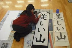 今日は1・2時間目に3年生が、3・4時間目に4年生が体育館で書初めを行いました。どちらの学年も床に新聞紙を敷き、その上に書初め用半紙を広げ、大筆で一文字一文字大きく丁寧に書いていました。体育館には墨汁の香りが漂い、静粛な空気に包まれていました。1・2年生は硬筆の書初めを各教室でそれぞれの時間割で行います。今日は2年生が取り組んでいました。お手本をじっくり見て、書き方のコツを捉え、こちらも一文字一文字丁寧に書いていきます。