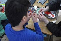 特別支援学級では24日の「折染め屋さん」の開店準備に大忙しです。自分たちで染めた紙を使って、「小物入れ・ポチ袋・割りばし袋・しおり」を制作、販売します。当日は土曜授業公開となっています。ぜひ特別支援学級の「折染め屋さん」にお越しください。