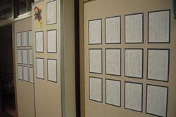 今日は午後になって寒さが増してきましたが、朝は体育朝会で1・3・6年生が持久走を行いました。今日から中休みも持久走の時間を設定して体力増進を目指します。廊下では昨日から書初め展が始まりました。どの教室の前も立派な文字が並んでいます。24日までの展示です。