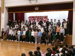 校長の佐藤です。毎年この行事があると、今年度ももうここまできたのかと思います。今日は5校時に6年生を送る会を行いました。各学年で歌を歌ったり、メッセージを伝えたり、大繩とび対決をしたり。それぞれの形で6年生に感謝の気持ちを伝えました。6年生からはそれぞれの学年に歌と言葉で「ありがとう」を伝えてくれました。そして最後に6年生から5年生に校旗、国旗、区旗が渡されました。これからは現5年生が学校の代表として、毎朝旗を揚げることになります。ところで、毎年この行事では「ありがとう」という言葉がたくさん聞かれます。「ありがとう」はいくらたくさんあってもとてもいい言葉ですね。たくさんの「ありがとう」が聞かれて、とてもほっこりとしたよい時間を過ごしました。