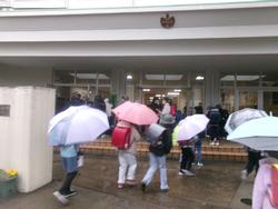 校長の佐藤です。今日は久しぶりの雨になりました。今年になって初めてではないでしょうか。それだけ雨が降っていないのですね。久しぶりということもあり、今朝の校門は少し混乱。傘の閉じ方を忘れてしまっている子、傘立ての場所を忘れてしまっている子などがいました。本校では雨が降ると、用務主事の方たちが子供たちのランドセルを拭いているのです。5年前に本校に赴任した時に、すてきなことだなと思いました。また、最近雨の日でも「面倒」ということで、傘をささずに登下校する子供がいます。さしてくるよう指導していますが、風邪をひかないか心配です。