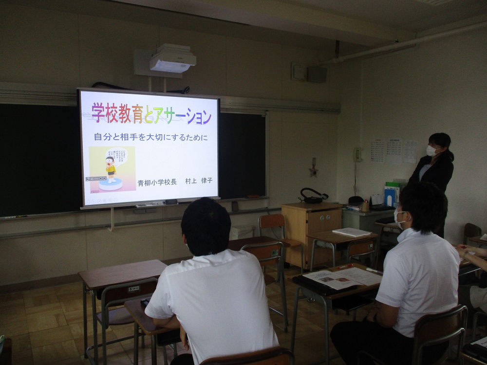 アサーション研修では、本校の村上校長が講師となり、「自分も相手も尊重しながら」関わる力が身につくような日々の指導について学びました。
