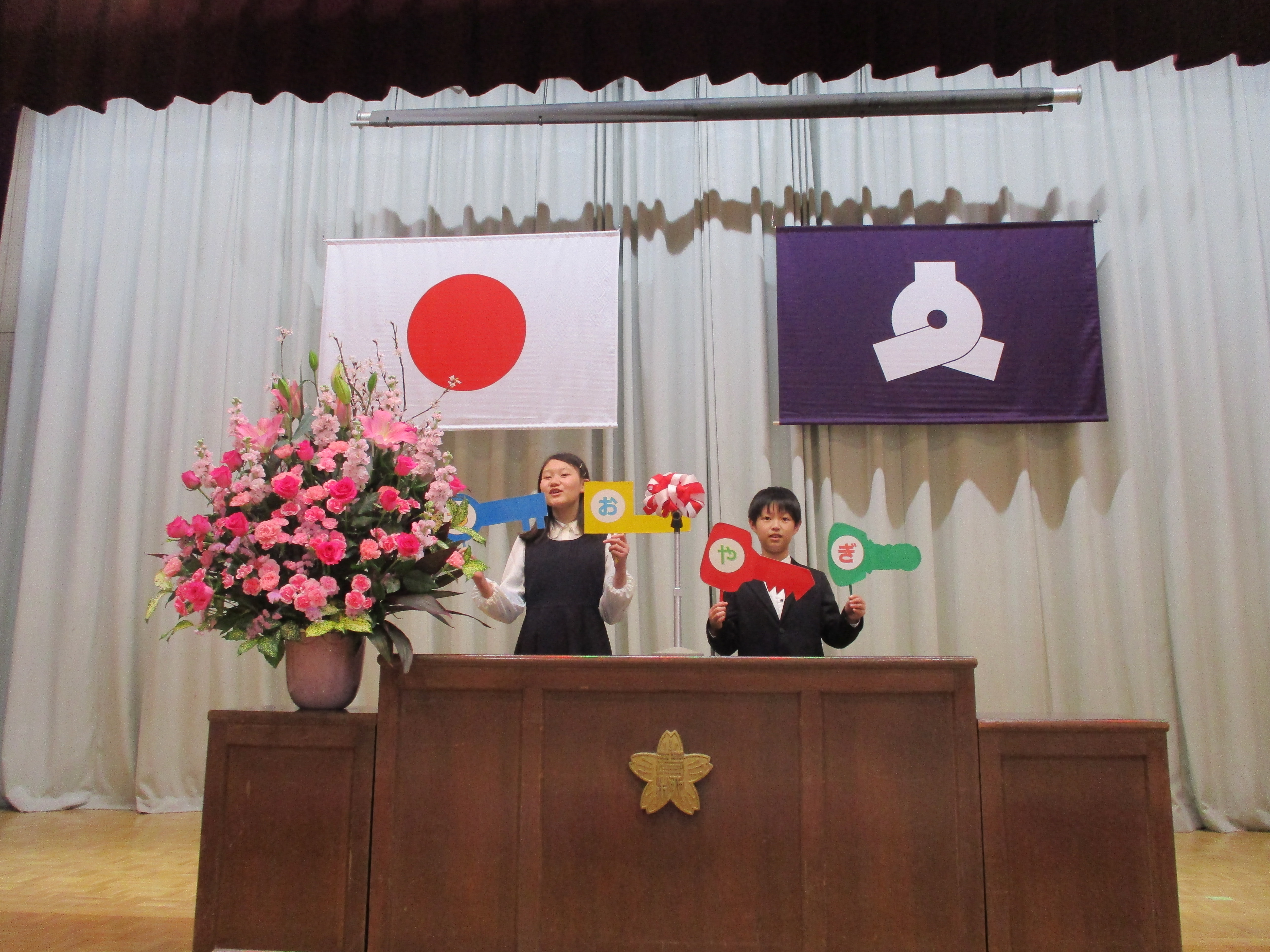 4月8日(月)より新年度が始まりました。着任式では転入教員の紹介があり、始業式では校長先生から進級のお祝いの言葉や担任発表がありました。始業式の後には、入学式を挙行しました。初めて登校した1年生は、校長先生からのお祝いの言葉をしっかりと聞き、小学校生活のはじめの一歩を踏み出しました。また、6年生の代表児童が歓迎の言葉として、「青柳のかぎ」を紹介し、1年生の入学をお祝いをしました。