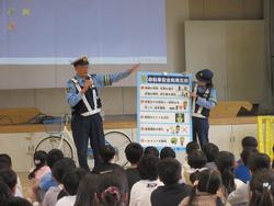 大塚警察署の方に自転車の乗り方、運転前の点検の仕方についてのお話を聞きました。代表児童が、実際に体育館に作ったコースを自転車で走り、どのようなことに気を付けて運転するかも学習しました。受講後、「交通セーフティー検定認定証」をもらいました。
