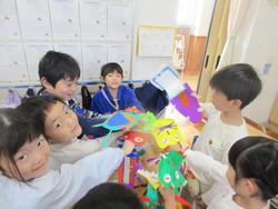 8日(水)にいろいろな形を組み合わせてオリジナルのモンスターを作りました。どんな形をいくつ使ったか友達に紹介することができました。