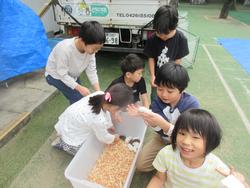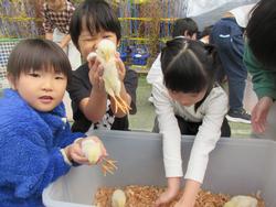 30日に一日動物村がありました。うさぎやひよこなどの動物に触れたり、観察したりしました。初めて触れる動物に感動したり、動物の動きの速さに驚いたりする姿が見られました。