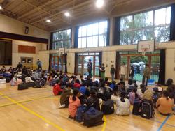 10月10日(金)から11日(土)にかけて4年生が防災宿泊体験を行いました。10日には小石川消防署や東京海上日動の方々を講師の先生にお招きし、起震車や煙体験、防災に関する知識を身に付けました。夕食には非常食体験をし、就寝時には配られた3枚の毛布を組み合わせて、校内で宿泊をしました。1泊2日の体験の中で児童は災害の恐ろしさを確認するとともに、自分の身を守るための知識と災害に対する備えの大切さを学びました。
