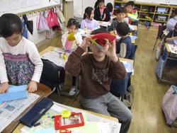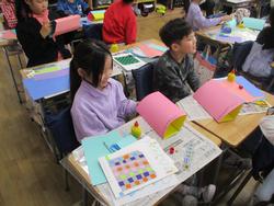 6日(木)に表裏の色が違う紙を使ってトーテムポール作りをしました。ものさしを活用して正しく長さを測って切ったり、ボンドで慎重に紙を張り付けたりしました。アイディアノートには、どんな目にするか考えながら描くことができました。