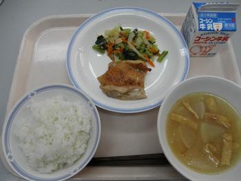 わかめご飯 鶏のしょうが焼き 野菜のごまあえ みそ汁 牛乳 |