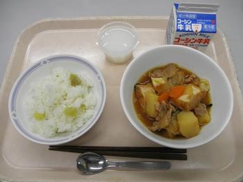 さつま芋ご飯 ぶた肉と生揚げの煮物 カルピスゼリー 牛乳 |