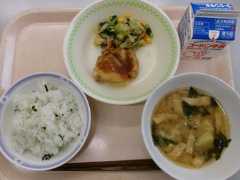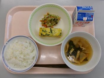 | 8 (水) | ご飯 千草焼き 海苔あえ みそ汁 牛乳 | |
