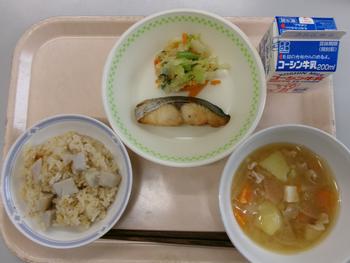 | 6 (月) | 里芋ごはん さわらの照り焼き 野菜のあえ物 さつま汁 牛乳 | |