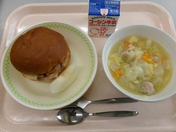 | 7 (火) | 照り焼きチキンサンド 野菜のスープ煮 梨 牛乳 | |