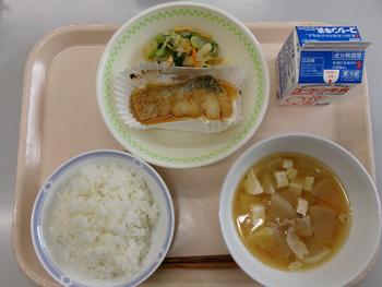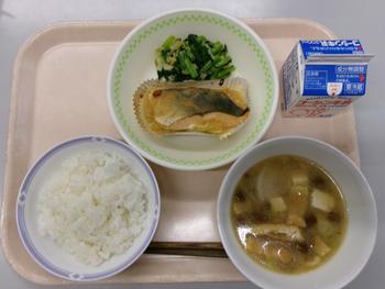 | 16 (木) | ごはん 白身魚のねぎ味噌焼き 油揚げと野菜のあえもの 豚汁 牛乳 | |