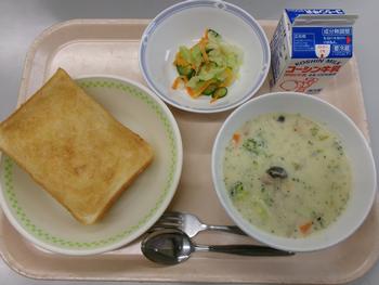 | 21 (火) | シナモントースト 秋の味覚シチュー フレンチサラダ 牛乳 | |