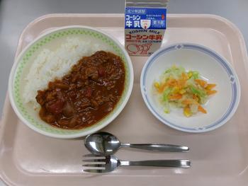 根菜たっぷりドライカレー 和風サラダ みかん 飲むヨーグルト |