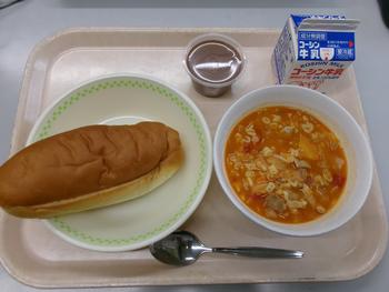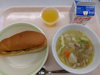 焼きピロシキ パスタ入り野菜スープ オレンジゼリー 牛乳 |