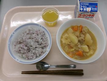 ゆかりご飯 豚肉とじゃが芋の味噌煮 パインゼリー 牛乳 |