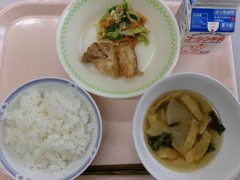 ご飯 鶏の生姜焼き 野菜とツナの和え物 みそ汁 牛乳 |