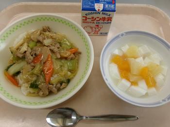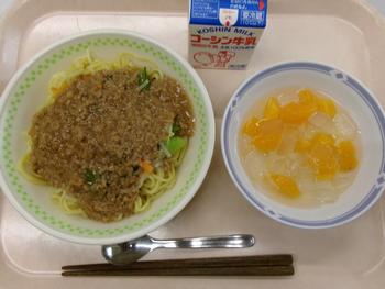 ジャージャー麺 フルーツポンチ 牛乳 |
