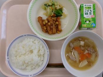 ご飯 ひじき入り卵焼き キャベツとわかめの甘酢あえ けんちん汁 牛乳 |