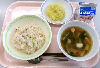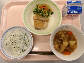 わかめご飯 鶏の梅肉焼き 野菜のごまあえ 大根のそぼろ煮 牛乳 |