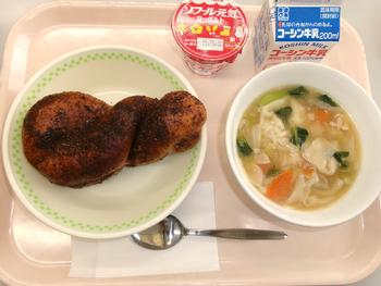 ココア揚げパン ワンタンスープ ヨーグルト 牛乳 |