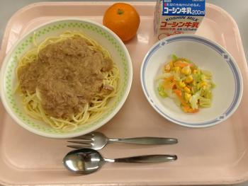 練馬スパゲッティ コーンサラダ みかん 牛乳 |