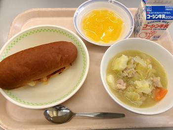 ピザパン 野菜のスープ煮 オレンジ寒天 牛乳 |